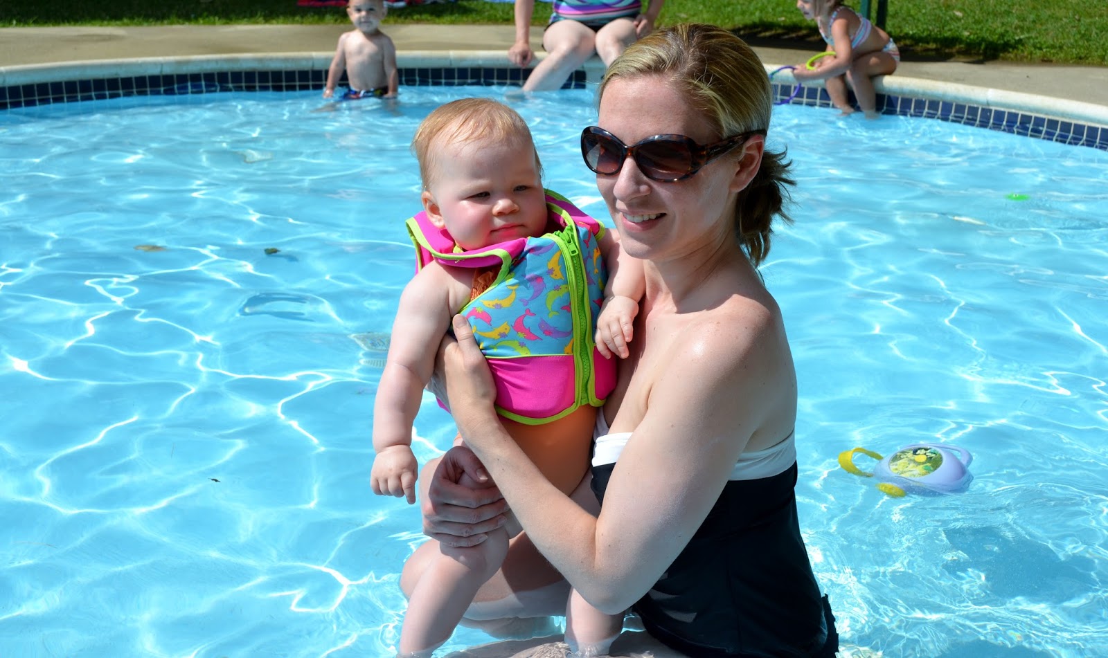 You should have seen me though, the first time we took her there. There were a bunch of older kids jumping in and running around the baby pool for some sort of kicks, and I was all, "Hey! They have the big pool and an entire lake. They better get out of this six foot wide baby pool right this second so my daughter can play safely in the only water she's allowed in!"